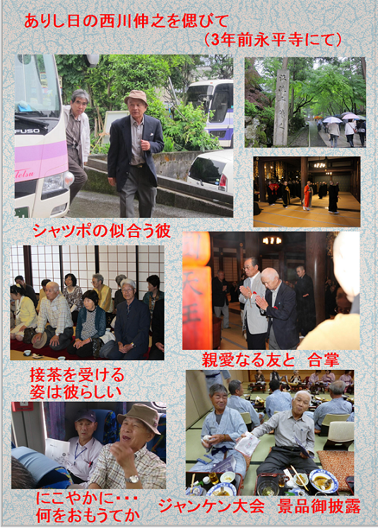 私も 忘年会の写真集の中より 探して 在りし日の西川さんを思い出しております。返信: 西川伸之君を偲び追悼 -