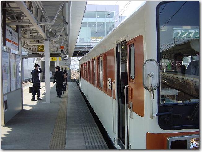 | 「同上:城北線ホーム」 JRの下りホームに列車がやってきました。 |