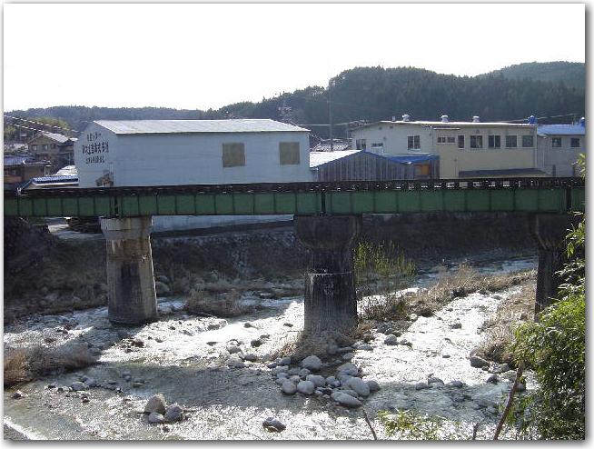 | 「橋」の右側を「明知鉄道」も渡っていきます。 「国鉄色」の「緑色」の鉄橋です。 |