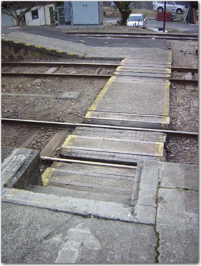「岩村駅」は「有人」なんですが、こういう「裏口」からすう〜っと入れるようです。 「バラスト」の上にではなく、「単なる砂利道」に敷かれたレールが「す☆て☆き」です。 |