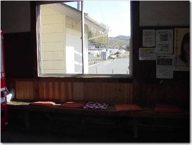 「待合室」のなかには、「明知鉄道」名物の「ざぶとん」が・・・ |