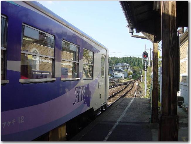 ゆっくりと「ホーム」に移動する「アケチ10形」です。 たぶんこれに乗って帰ることになると思います。 |