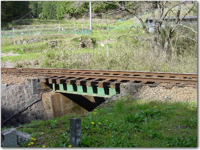 ちいさい「鉄橋」です。 やっぱり緑色の「国鉄色」です。 |