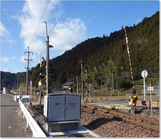 | 線路は真直ぐな直線のようですが、カーブミラーというのが気になります。 ちょっと下向きな感じもします。 何のためのミラーなのでしょうね。 (2020年12月03日 09時36分56秒) |